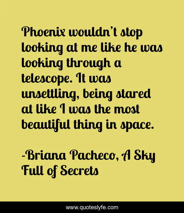 "Briana Pacheco, A Sky Full of Secrets Quotes." Quoteslyfe.com, 2025. Sat. 06 Dec. 2025. <https://www.quoteslyfe.com/quote/Phoenix-wouldn-t-stop-looking-at-me-232462>.