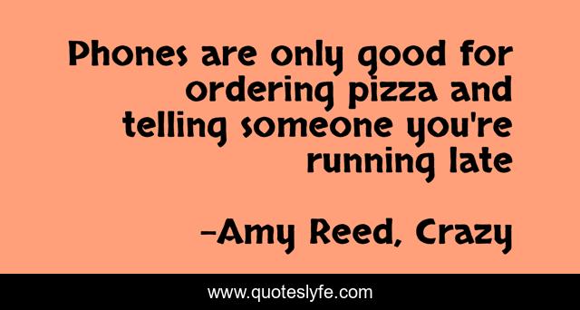 This page presents the quote "Phones are only good for ordering pizza and telling someone you're running late". Author of this quote is Amy Reed, Crazy. This quote is about funny, crazy, quote, book, amy-reed, comedy,.