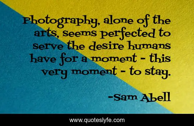 This page presents the quote "Photography, alone of the arts, seems perfected to serve the desire humans have for a moment - this very moment - to stay.". Author of this quote is Sam Abell. This quote is about desire, moment, photography,.
