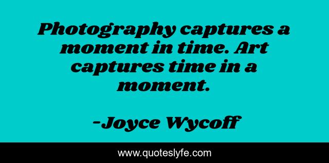 "Joyce Wycoff Quotes." Quoteslyfe.com, 2025. Mon. 08 Dec. 2025. <https://www.quoteslyfe.com/quote/Photography-captures-a-moment-in-time-Art-238572>.