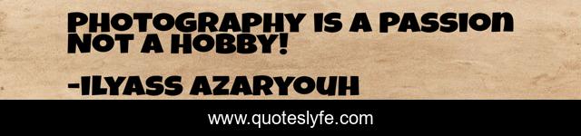 "ilyass azaryouh Quotes." Quoteslyfe.com, 2025. Mon. 08 Dec. 2025. <https://www.quoteslyfe.com/quote/Photography-is-a-Passion-Not-a-Hobby-238627>.