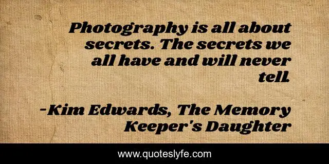 "Kim Edwards, The Memory Keeper's Daughter Quotes." Quoteslyfe.com, 2025. Fri. 05 Dec. 2025. <https://www.quoteslyfe.com/quote/Photography-is-all-about-secrets-The-secrets-212125>.