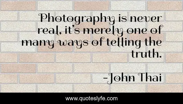 "John Thai Quotes." Quoteslyfe.com, 2025. Sun. 07 Dec. 2025. <https://www.quoteslyfe.com/quote/Photography-is-never-real-it-s-merely-110492>.