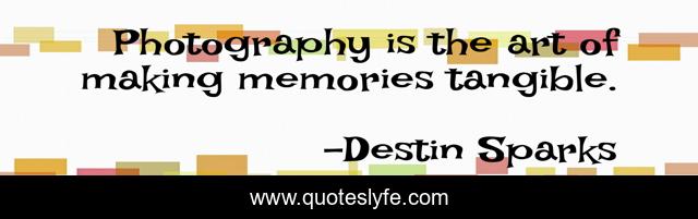 "Destin Sparks Quotes." Quoteslyfe.com, 2025. Tue. 09 Dec. 2025. <https://www.quoteslyfe.com/quote/Photography-is-the-art-of-making-memories-238550>.