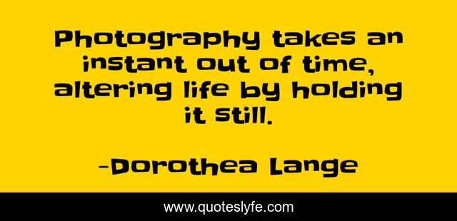 This page presents the quote "Photography takes an instant out of time, altering life by holding it still.". Author of this quote is Dorothea Lange. This quote is about life, art, photography,.
