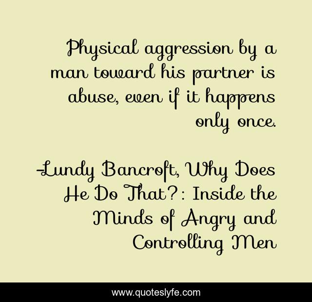 "Lundy Bancroft, Why Does He Do That?: Inside the Minds of Angry and Controlling Men Quotes." Quoteslyfe.com, 2025. Mon. 08 Dec. 2025. <https://www.quoteslyfe.com/quote/Physical-aggression-by-a-man-toward-his-210248>.