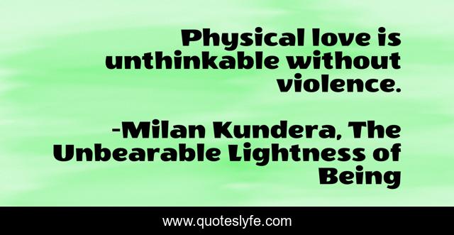 "Milan Kundera, The Unbearable Lightness of Being Quotes." Quoteslyfe.com, 2025. Mon. 08 Dec. 2025. <https://www.quoteslyfe.com/quote/Physical-love-is-unthinkable-without-violence-942>.