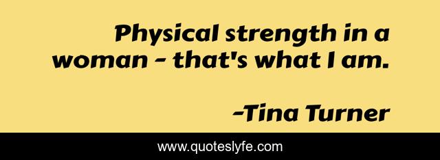 This page presents the quote "Physical strength in a woman - that's what I am.". Author of this quote is Tina Turner. .
