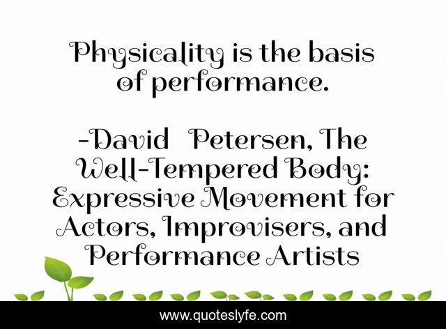 This page presents the quote "Physicality is the basis of performance.". Author of this quote is David Petersen, The Well-Tempered Body: Expressive Movement for Actors, Improvisers, and Performance Artists. This quote is about drama, acting, theater,.