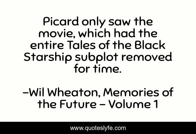 "Wil Wheaton, Memories of the Future - Volume 1 Quotes." Quoteslyfe.com, 2025. Sat. 06 Dec. 2025. <https://www.quoteslyfe.com/quote/Picard-only-saw-the-movie-which-had-218831>.