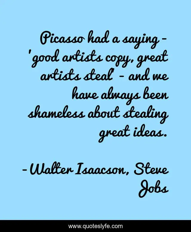 "Walter Isaacson, Steve Jobs Quotes." Quoteslyfe.com, 2025. Fri. 05 Dec. 2025. <https://www.quoteslyfe.com/quote/Picasso-had-a-saying-good-artists-copy-28380>.