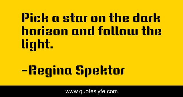 This page presents the quote "Pick a star on the dark horizon and follow the light.". Author of this quote is Regina Spektor. This quote is about enthusiasm, song, inspirational, song-lyrics,.