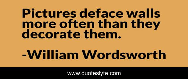 "William Wordsworth Quotes." Quoteslyfe.com, 2025. Mon. 08 Dec. 2025. <https://www.quoteslyfe.com/quote/Pictures-deface-walls-more-often-than-they-317889>.