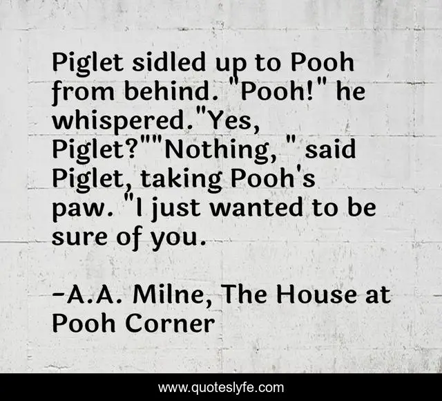 "A.A. Milne, The House at Pooh Corner Quotes." Quoteslyfe.com, 2025. Fri. 05 Dec. 2025. <https://www.quoteslyfe.com/quote/Piglet-sidled-up-to-Pooh-from-behind-49971>.