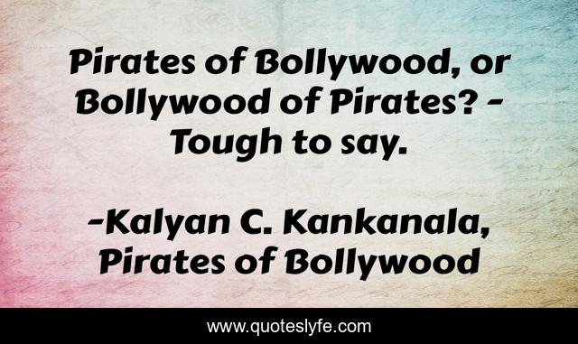 This page presents the quote "Pirates of Bollywood, or Bollywood of Pirates? - Tough to say.". Author of this quote is Kalyan C. Kankanala, Pirates of Bollywood. This quote is about pirates, entertainment, piracy, legal, copyrights, bollywood, thriller,.