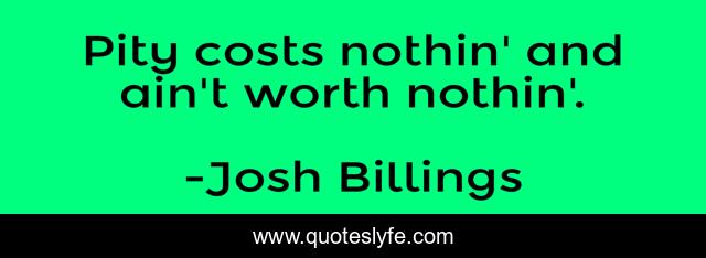 "Josh Billings Quotes." Quoteslyfe.com, 2025. Mon. 08 Dec. 2025. <https://www.quoteslyfe.com/quote/Pity-costs-nothin-and-ain-t-worth-266864>.