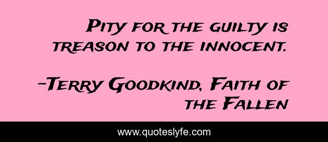 This page presents the quote "Pity for the guilty is treason to the innocent.". Author of this quote is Terry Goodkind, Faith of the Fallen. This quote is about justice, pity, 2000, kahlan-amnell,.