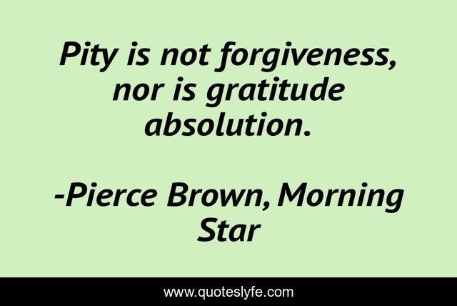 This page presents the quote "Pity is not forgiveness, nor is gratitude absolution.". Author of this quote is Pierce Brown, Morning Star. This quote is about gratitude, pity, forgiveness,.