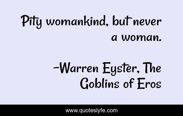 "Warren Eyster, The Goblins of Eros Quotes." Quoteslyfe.com, 2025. Sat. 06 Dec. 2025. <https://www.quoteslyfe.com/quote/Pity-womankind-but-never-a-woman-177307>.