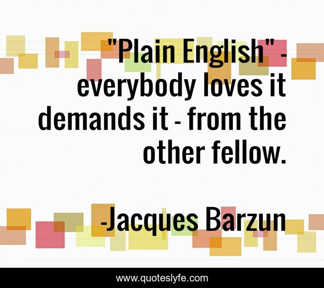 "Jacques Barzun Quotes." Quoteslyfe.com, 2026. Tue. 20 Jan. 2026. <https://www.quoteslyfe.com/quote/Plain-English-everybody-loves-it-demands-it-279035>.