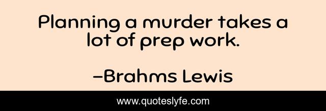 This page presents the quote "Planning a murder takes a lot of prep work.". Author of this quote is Brahms Lewis. This quote is about murder, etienne-d-oliphant-will-solve-it, murder-mystery,.