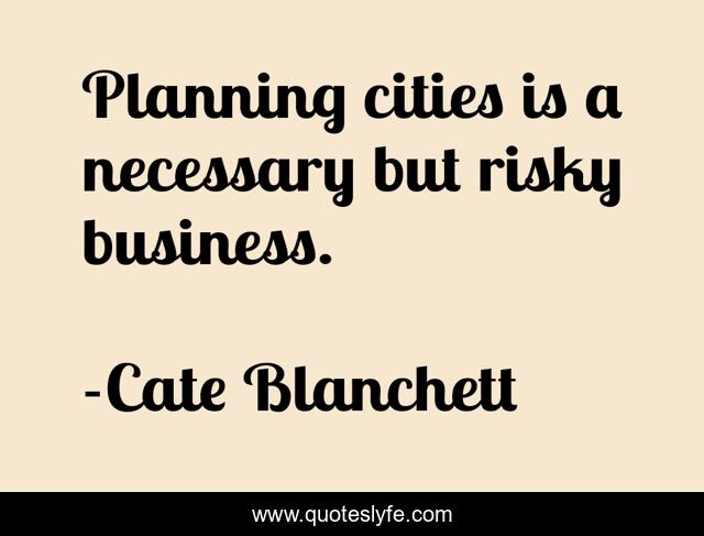 This page presents the quote "Planning cities is a necessary but risky business.". Author of this quote is Cate Blanchett. This quote is about planning, necessary, risky,.