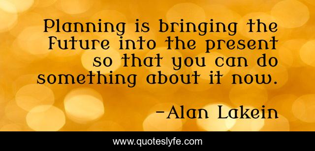 This page presents the quote "Planning is bringing the future into the present so that you can do something about it now.". Author of this quote is Alan Lakein. This quote is about planning, present,.