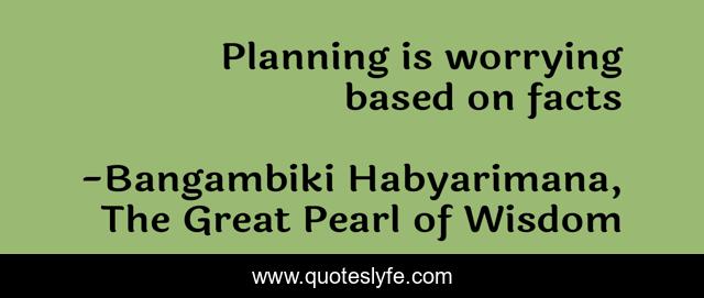 "Bangambiki Habyarimana, The Great Pearl of Wisdom Quotes." Quoteslyfe.com, 2025. Sat. 06 Dec. 2025. <https://www.quoteslyfe.com/quote/Planning-is-worrying-based-on-facts-239463>.