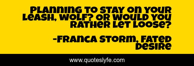"Franca Storm, Fated Desire Quotes." Quoteslyfe.com, 2025. Sat. 06 Dec. 2025. <https://www.quoteslyfe.com/quote/Planning-to-stay-on-your-leash-wolf-202658>.