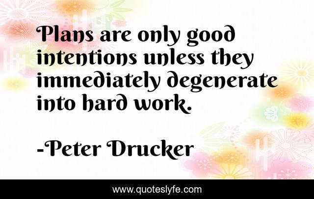 This page presents the quote "Plans are only good intentions unless they immediately degenerate into hard work.". Author of this quote is Peter Drucker. This quote is about good, hard work,.