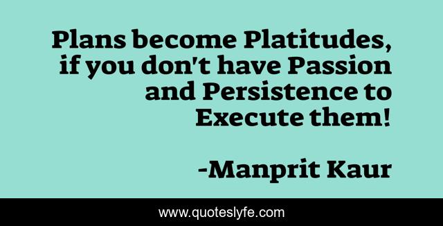This page presents the quote "Plans become Platitudes, if you don't have Passion and Persistence to Execute them!". Author of this quote is Manprit Kaur. This quote is about execute, success, passion, plan, action, persistence,.