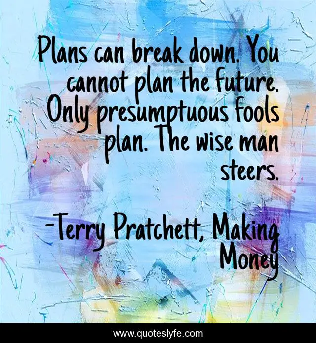 This page presents the quote "Plans can break down. You cannot plan the future. Only presumptuous fools plan. The wise man steers.". Author of this quote is Terry Pratchett, Making Money. This quote is about future, planning, plans,.