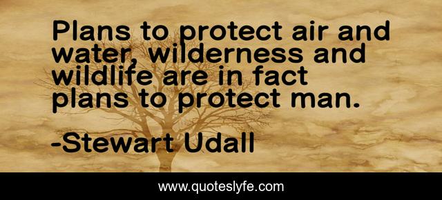 This page presents the quote "Plans to protect air and water, wilderness and wildlife are in fact plans to protect man.". Author of this quote is Stewart Udall. This quote is about water, wilderness, man,.