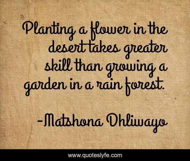"Matshona Dhliwayo Quotes." Quoteslyfe.com, 2025. Mon. 08 Dec. 2025. <https://www.quoteslyfe.com/quote/Planting-a-flower-in-the-desert-takes-15494>.