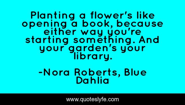 This page presents the quote "Planting a flower's like opening a book, because either way you're starting something. And your garden's your library.". Author of this quote is Nora Roberts, Blue Dahlia. This quote is about gardening, flowers, books, library,.