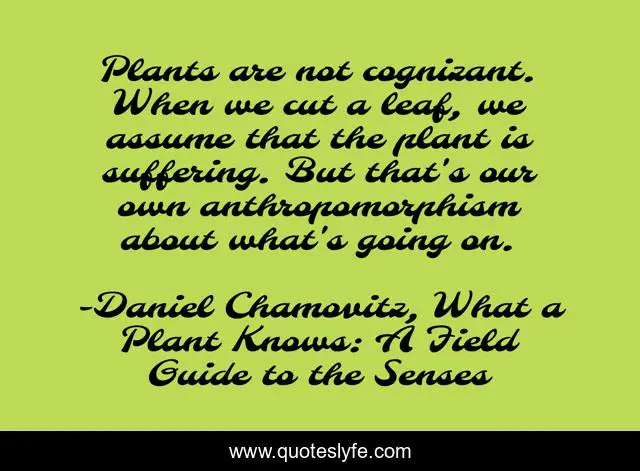 "Daniel Chamovitz, What a Plant Knows: A Field Guide to the Senses Quotes." Quoteslyfe.com, 2025. Sat. 06 Dec. 2025. <https://www.quoteslyfe.com/quote/Plants-are-not-cognizant-When-we-cut-75709>.