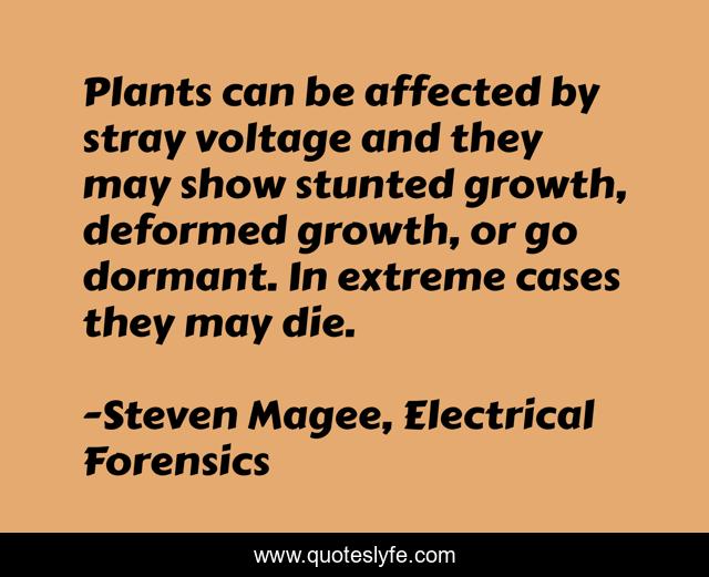 "Steven Magee, Electrical Forensics Quotes." Quoteslyfe.com, 2025. Sat. 06 Dec. 2025. <https://www.quoteslyfe.com/quote/Plants-can-be-affected-by-stray-voltage-139833>.