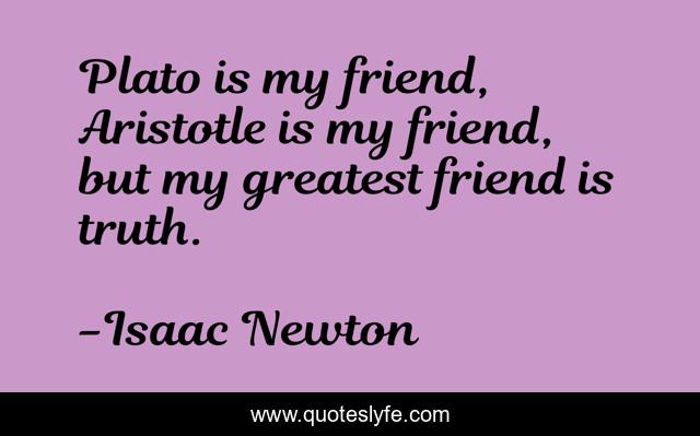 This page presents the quote "Plato is my friend, Aristotle is my friend, but my greatest friend is truth.". Author of this quote is Isaac Newton. This quote is about isaac-newton, friend, truth,.