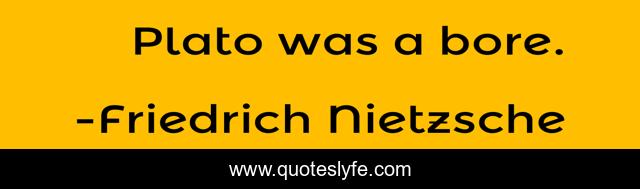This page presents the quote "Plato was a bore.". Author of this quote is Friedrich Nietzsche. .