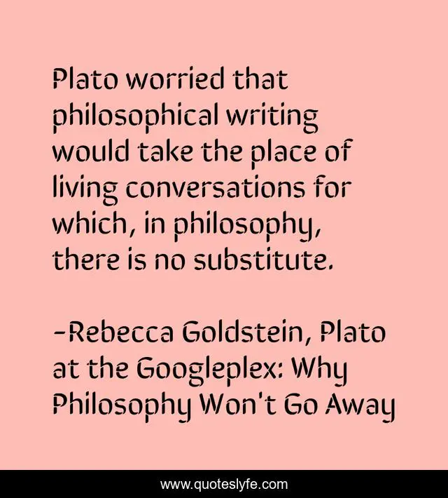 This page presents the quote "Plato worried that philosophical writing would take the place of living conversations for which, in philosophy, there is no substitute.". Author of this quote is Rebecca Goldstein, Plato at the Googleplex: Why Philosophy Won't Go Away. This quote is about conversation, friendship,.