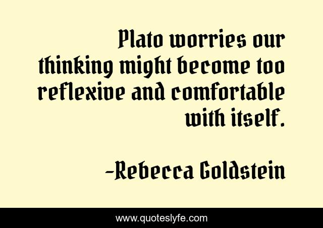 This page presents the quote "Plato worries our thinking might become too reflexive and comfortable with itself.". Author of this quote is Rebecca Goldstein. This quote is about thinking, self-examination,.