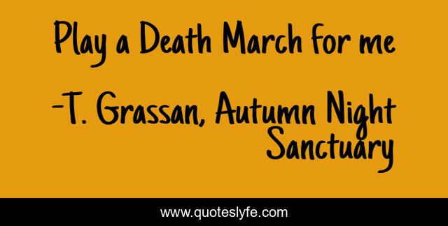 "T. Grassan, Autumn Night Sanctuary Quotes." Quoteslyfe.com, 2025. Sat. 06 Dec. 2025. <https://www.quoteslyfe.com/quote/Play-a-Death-March-for-me-113853>.