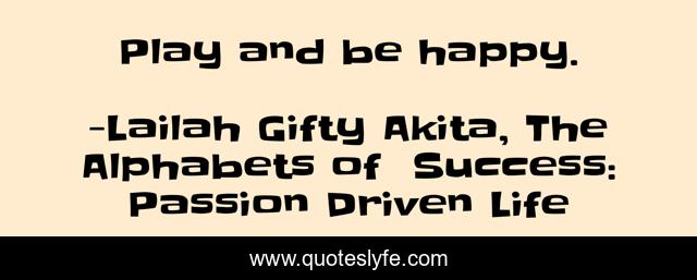 "Lailah Gifty Akita, The Alphabets of Success: Passion Driven Life Quotes." Quoteslyfe.com, 2025. Tue. 09 Dec. 2025. <https://www.quoteslyfe.com/quote/Play-and-be-happy-217374>.