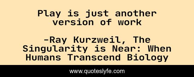 "Ray Kurzweil, The Singularity is Near: When Humans Transcend Biology Quotes." Quoteslyfe.com, 2025. Fri. 05 Dec. 2025. <https://www.quoteslyfe.com/quote/Play-is-just-another-version-of-work-108607>.