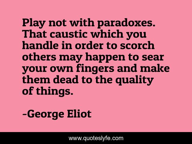 This page presents the quote "Play not with paradoxes. That caustic which you handle in order to scorch others may happen to sear your own fingers and make them dead to the quality of things.". Author of this quote is George Eliot. This quote is about positive, confidence,.