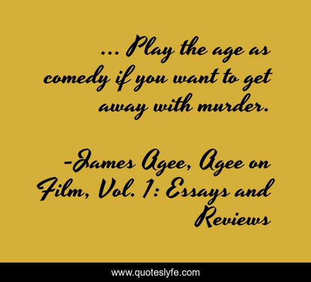 This page presents the quote "... Play the age as comedy if you want to get away with murder.". Author of this quote is James Agee, Agee on Film, Vol. 1: Essays and Reviews. This quote is about murder, humor, film,.