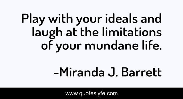 This page presents the quote "Play with your ideals and laugh at the limitations of your mundane life.". Author of this quote is Miranda J. Barrett. This quote is about limitations, mundane-life, play, ideal-life, playful,.
