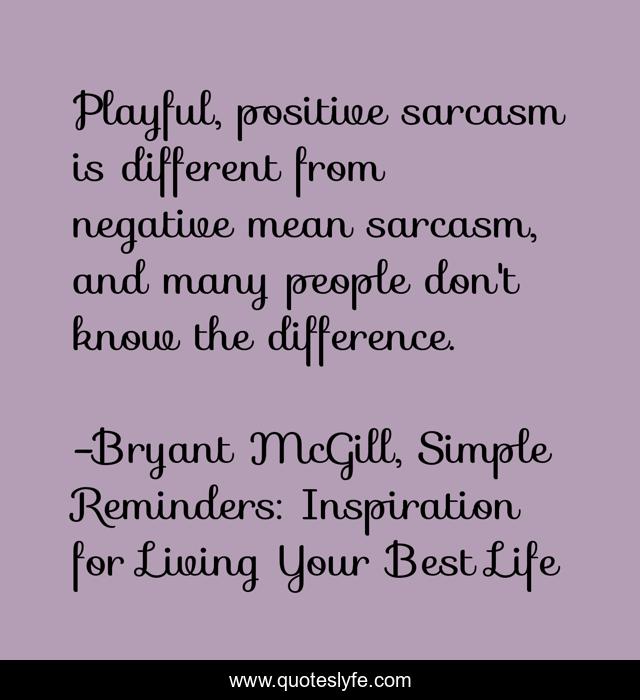 "Bryant McGill, Simple Reminders: Inspiration for Living Your Best Life Quotes." Quoteslyfe.com, 2025. Fri. 05 Dec. 2025. <https://www.quoteslyfe.com/quote/Playful-positive-sarcasm-is-different-from-negative-199931>.