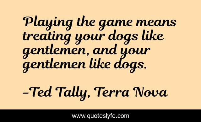 "Ted Tally, Terra Nova Quotes." Quoteslyfe.com, 2025. Mon. 08 Dec. 2025. <https://www.quoteslyfe.com/quote/Playing-the-game-means-treating-your-dogs-229485>.
