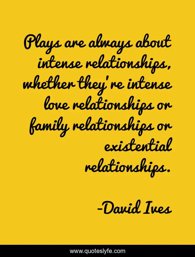 This page presents the quote "Plays are always about intense relationships, whether they're intense love relationships or family relationships or existential relationships.". Author of this quote is David Ives. This quote is about relationships, always, love, affection,.